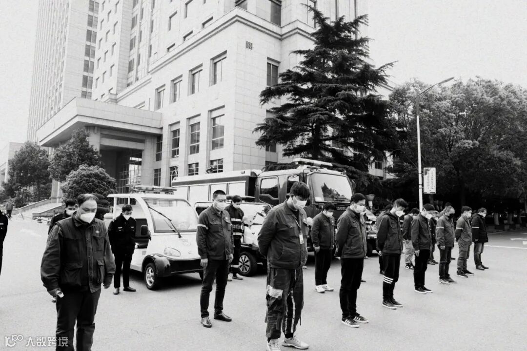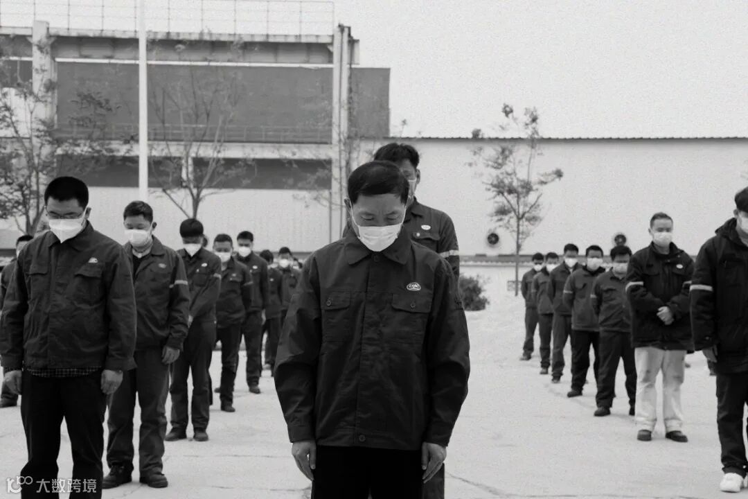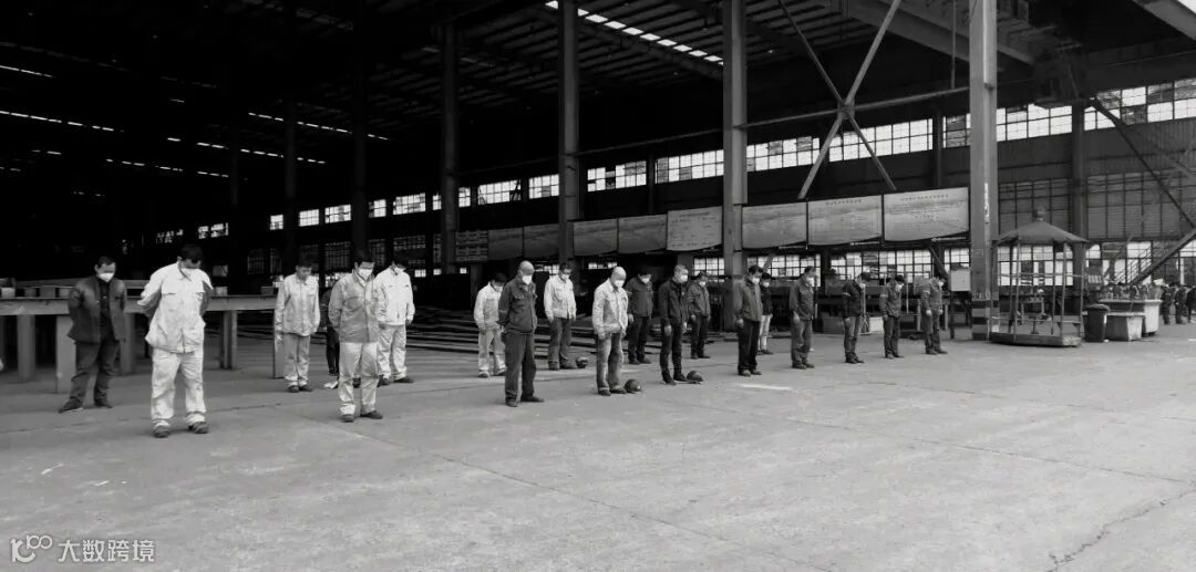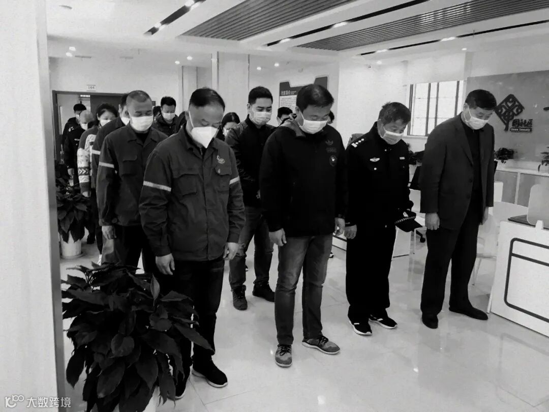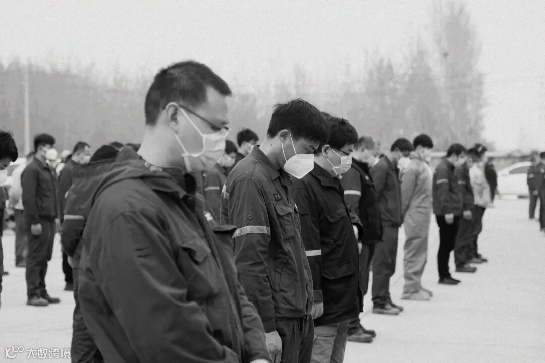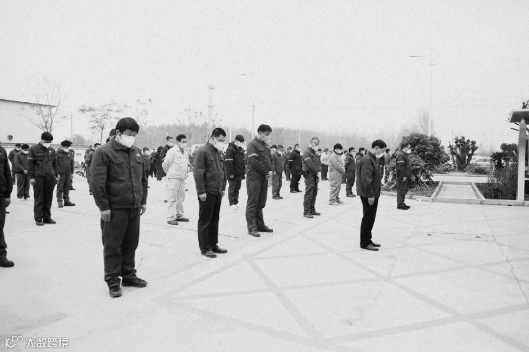 上午10时,厂区内在岗职工原地默哀三分钟,汽车、厂内外试验试航船舶鸣笛。下沉社区服务武船党员原地默哀。居家职工起立致哀。