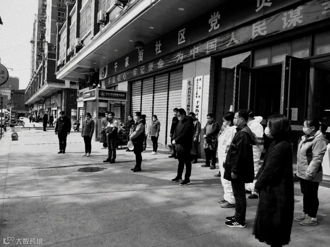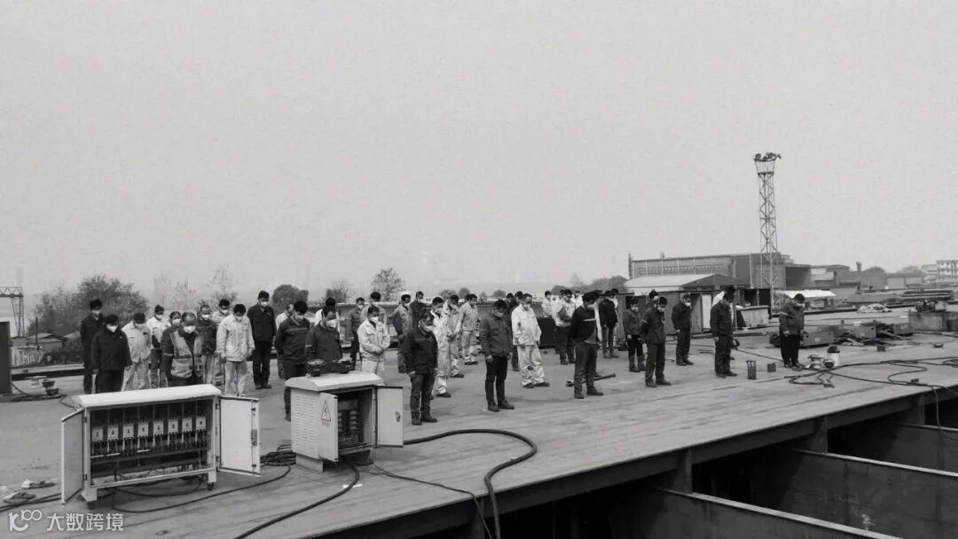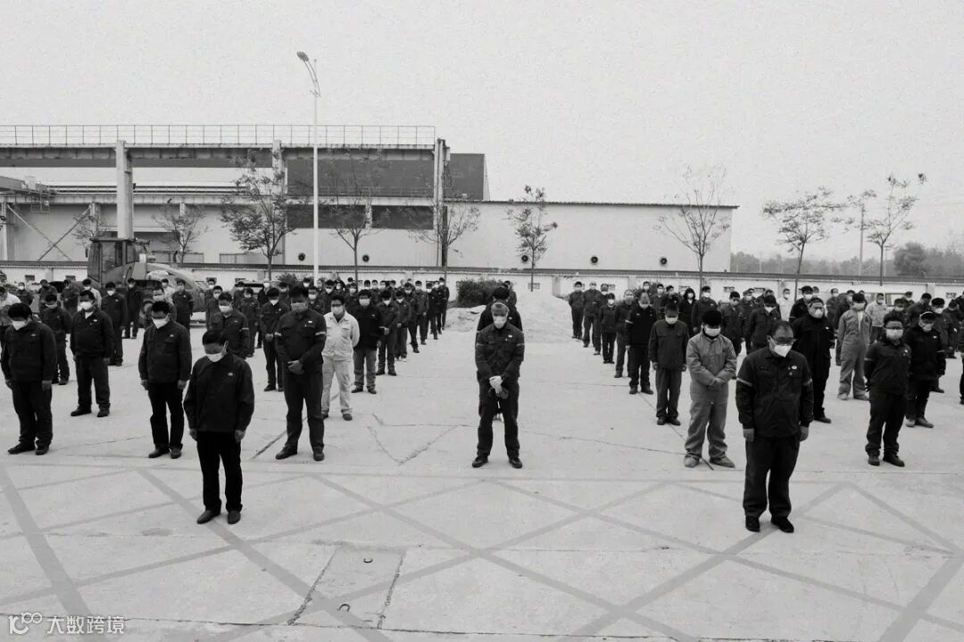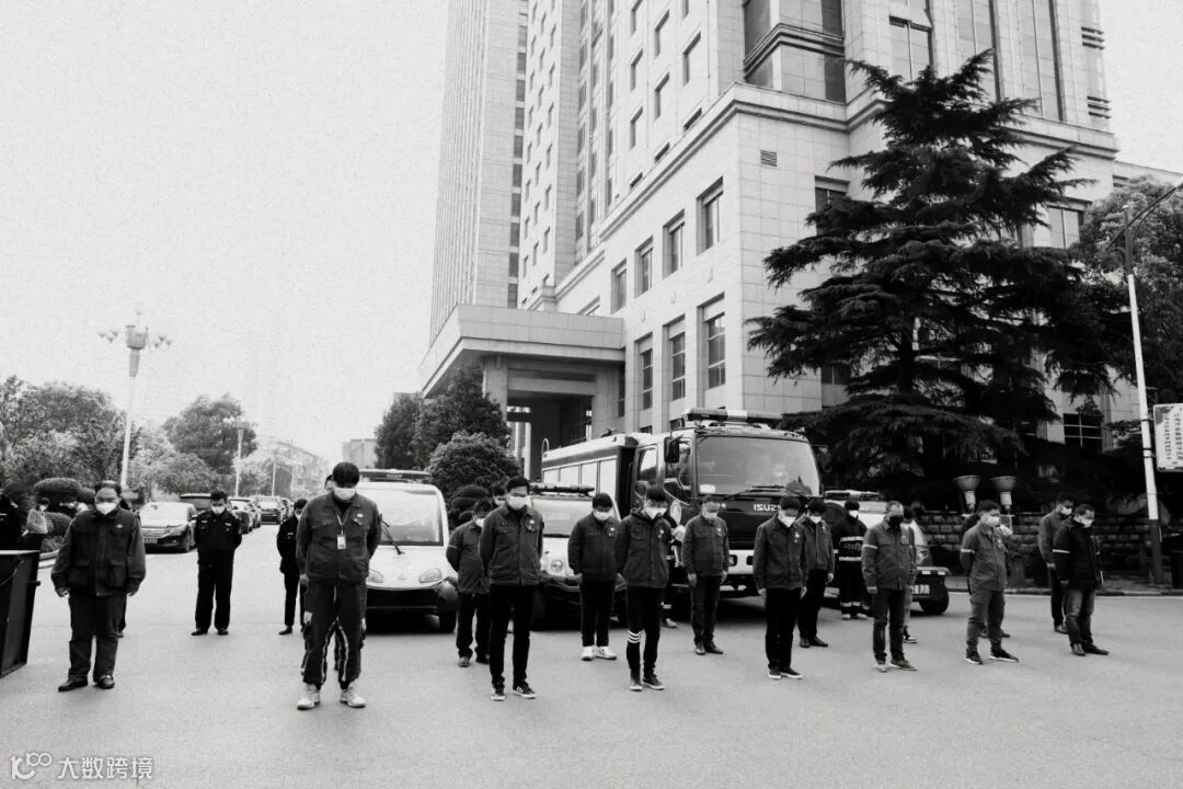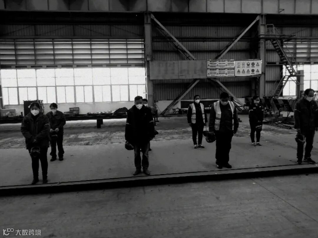 上午10时,厂区内在岗职工原地默哀三分钟,汽车、厂内外试验试航船舶鸣笛。下沉社区服务武船党员原地默哀。居家职工起立致哀。