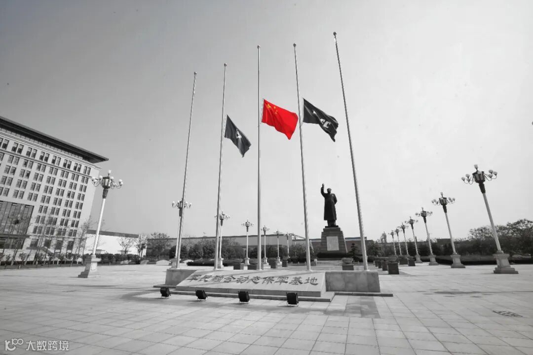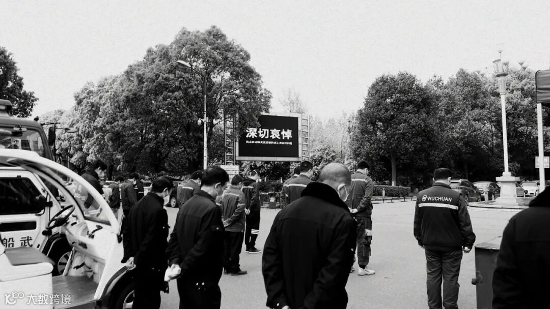 上午8时,各厂区内国旗、集团和武船旗帜降半旗致哀。
