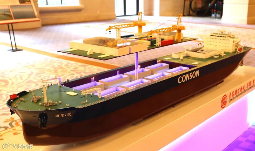 ▲全球首艘10万吨级全封闭、可游戈大型深远海养殖工船(效果图、模型)