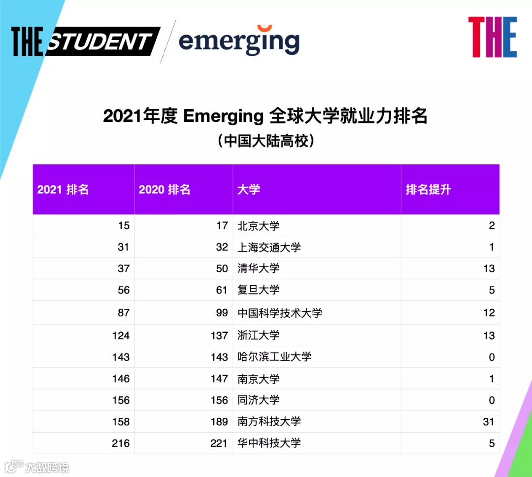 《全球大学就业力排名》是目前全球企业雇主使用率较高的排名之一,展示了在顶级公司的招聘人员眼中,哪些大学在提升学生就业力和对于工作场合的准备程度上具有更佳的表现。