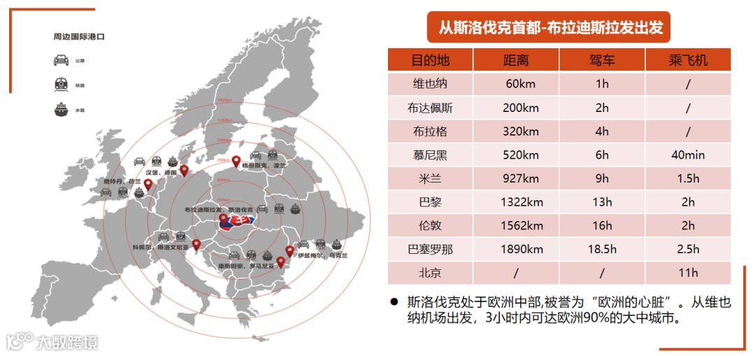 从首都布拉迪斯发至奥地利首都维也纳,车程只需40分钟,(申根国家)两国无边界检查,自由进出、居住、读书、工作、创业。