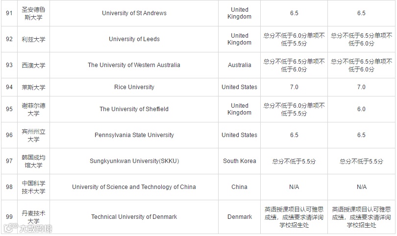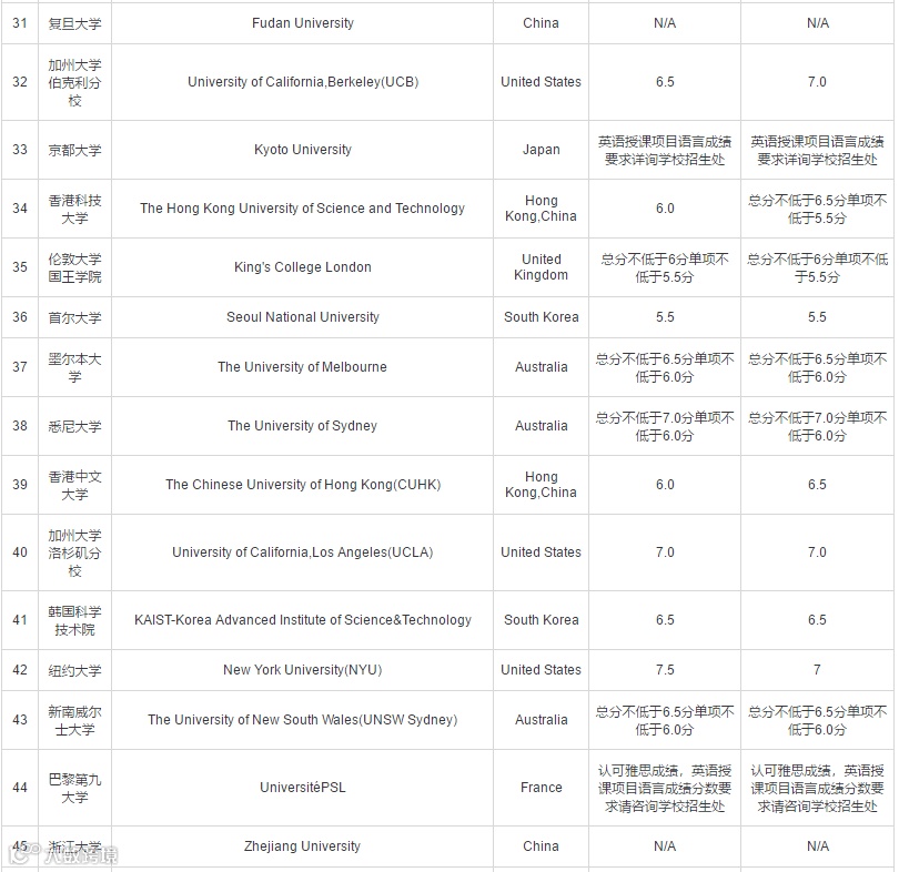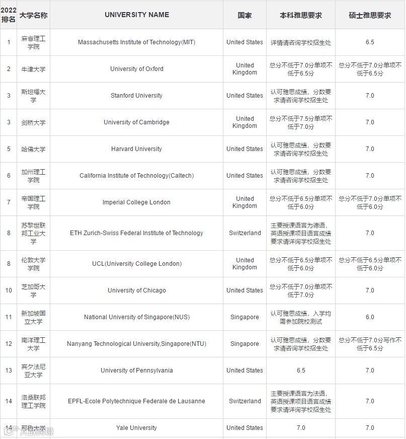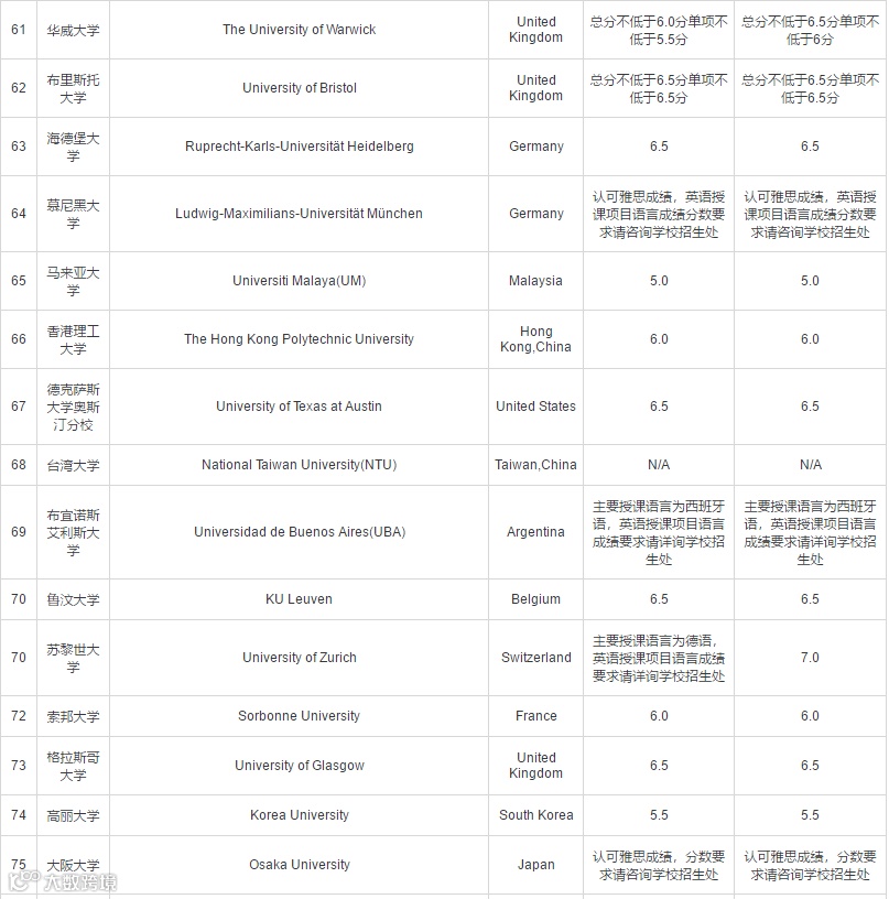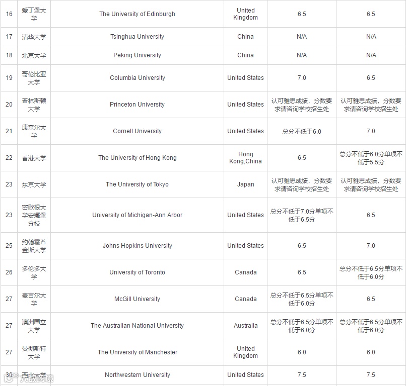 虽然学校排名有浮动,那么对雅思的要求是否有变化?我们来一起看看具体的要求情况: