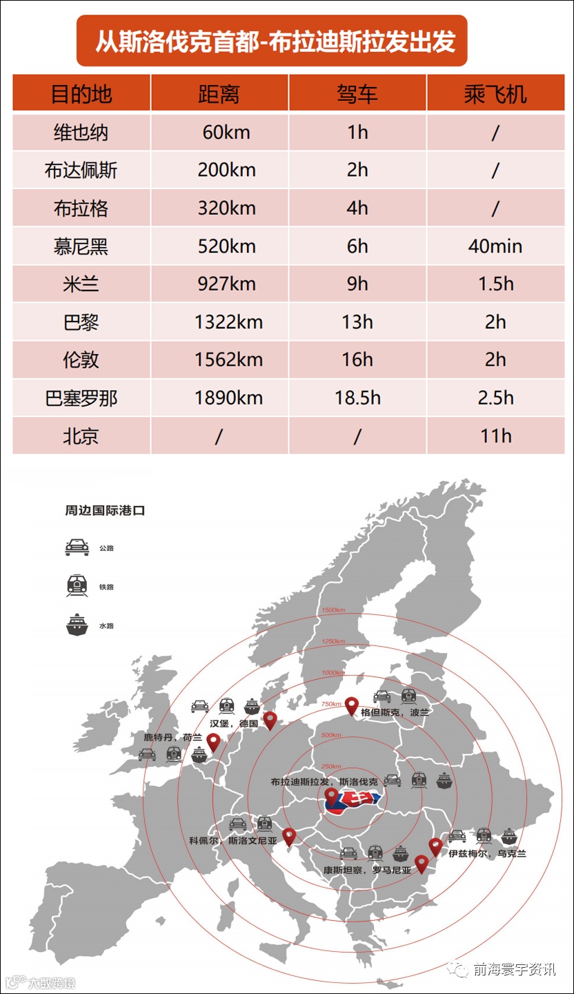 斯洛伐克处于欧洲中部,被誉为“欧洲的心脏”。从维也纳机场出发,3小时内可达欧洲90%的大中城市。