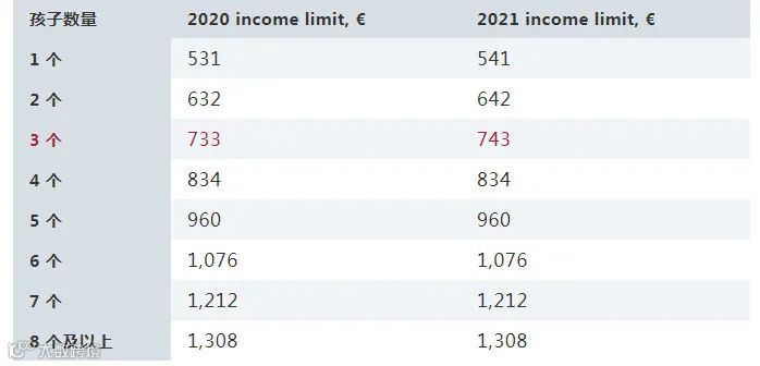 从1月的第一周起,有三个孩子的家庭的“工作家庭补助”的周收入门槛将提高10欧元,这将使约48,700个家庭受益。这将使约4.87万个低收入家庭受益,明年的费用为2,140万欧元。