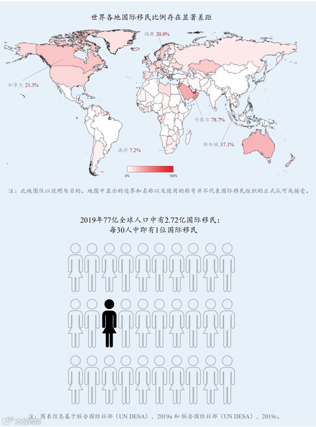 联合国经社部(UN DESA)根据各国提供的数据估算了目前全球国际移民的数量,以下讨论 以该估算为基础。