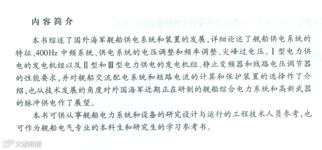 本书可供从事舰船电力系统和设备的研究设计与运行的工程技术人员参考,也可作为舰船电气专业的本科生和研究生的学习参考书。