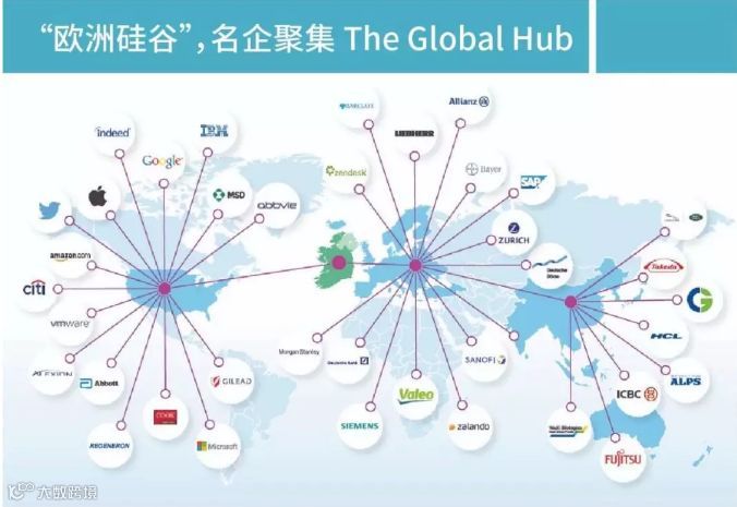 根据目前统计,除了苹果、谷歌、推特、领英……等科技巨擘将欧洲总部开设在都柏林,美国银行、巴克莱银行、花旗集团、摩根大通、标准普尔等金融巨头也相继在爱尔兰设立了新业务分支。
