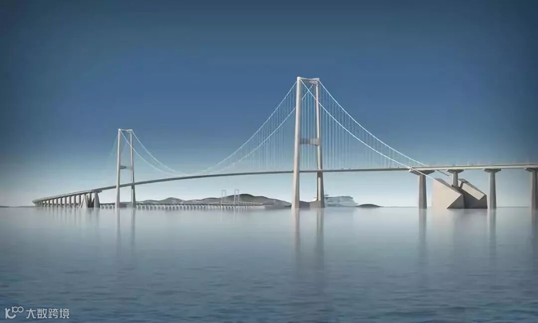 伶仃洋大桥为双塔三跨悬索桥,主跨跨径达到1666米,居世界同类桥梁第四,钢箱梁全宽44.7米,桥面高90米,相当于30层楼房的高度,建成后将成为全球最高的海中大桥。