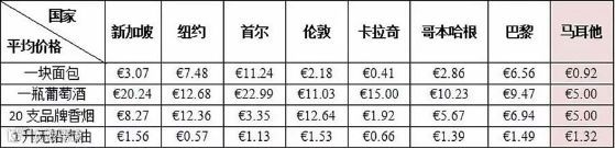 在马耳他,一些生活类消费可能相对于保加利亚、波兰、克罗地亚、俄罗斯和塞维尼亚较高,但却低于英国、德国和意大利。
