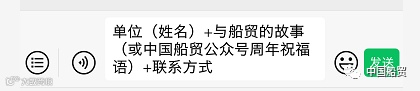 值“中国船贸”微信公众号正式开通一周年之际,“中国船贸”微信公众号将开展征集你与“中国船贸军贸发展”的故事或为“中国船贸微信公众号”送周年祝福活动。