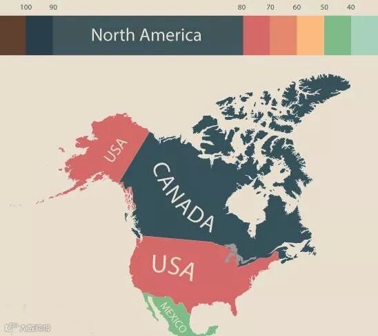 北美洲三大国家中,生活成本由高到低分别为:加拿大、美国、墨西哥。