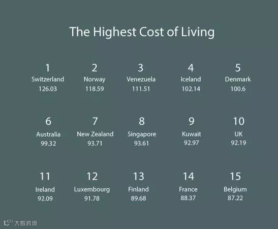 英国知名网站MoveHub根据世界著名数据分析平台Numbeo(该网站透过各种管道取得世界各地的成本与价格资料,据称拥有这方面的全球最大资料库)总结的数据,综合世界各国的消费者物价指数,用简单明了的彩色矢量图绘制出了全球生活成本物价图,并计算出了生活成本最高和最低的国家,从而给全球范围内的生活提供了一定的参考和专业指导。