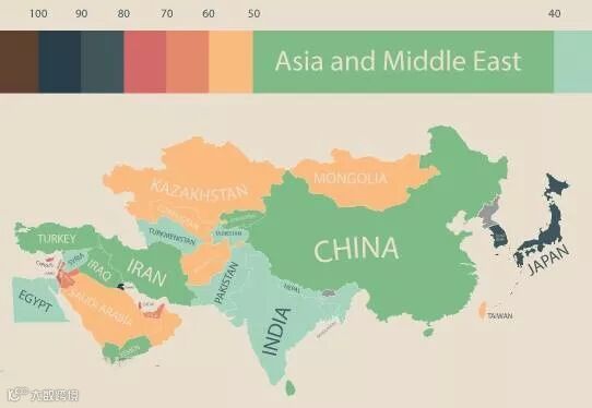 那么根据这张世界地图,你便可以依照自己的消费水平选择适合自己居住的国家了,比如想寻找一个和中国物价相当的国家,那么只需要在这张地图中找到和中国颜色一致的国家即可,这其中便有欧洲国家波兰、美洲国家墨西哥等国。