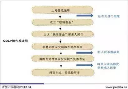 根据上图,符合条件的外资基金(主要是对冲基金)或管理人先在上海注册一个“联络基金”,再由该“联络基金”在境内以人民币形式向符合条件的境内投资者募集资金,将募集到的资金结汇后交给海外注册的对冲基金,最后由海外对冲基金投资于境外二级市场。