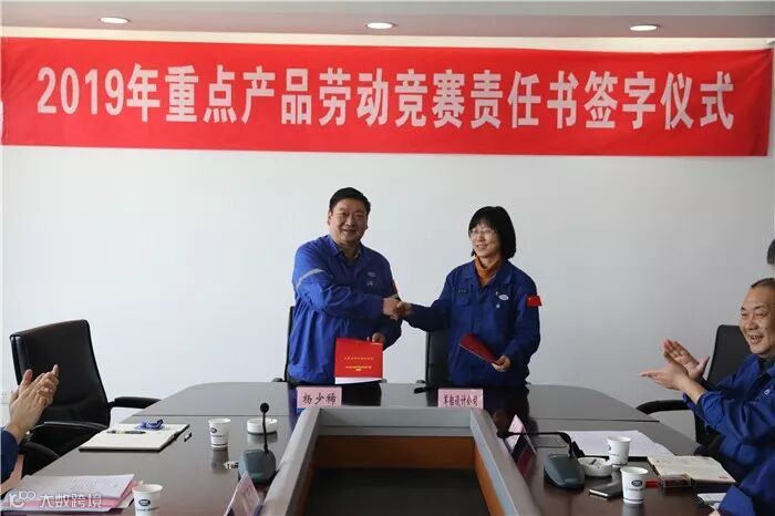 近日,武船集团工会举行2019年重点产品劳动竞赛责任书签订仪式。公司党委副书记、工会主席杨少稀与部分子公司主要领导签订劳动竞赛责任书。