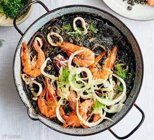 还有一种称得上“非主流”的墨鱼海鲜饭,因为卖相奇特,会让人一时难以接受。在传统海鲜饭中加入适量墨鱼汁,墨鱼的鲜香与米饭融为一体,独特的口感瞬间打开你的味蕾,让你欲罢不能。