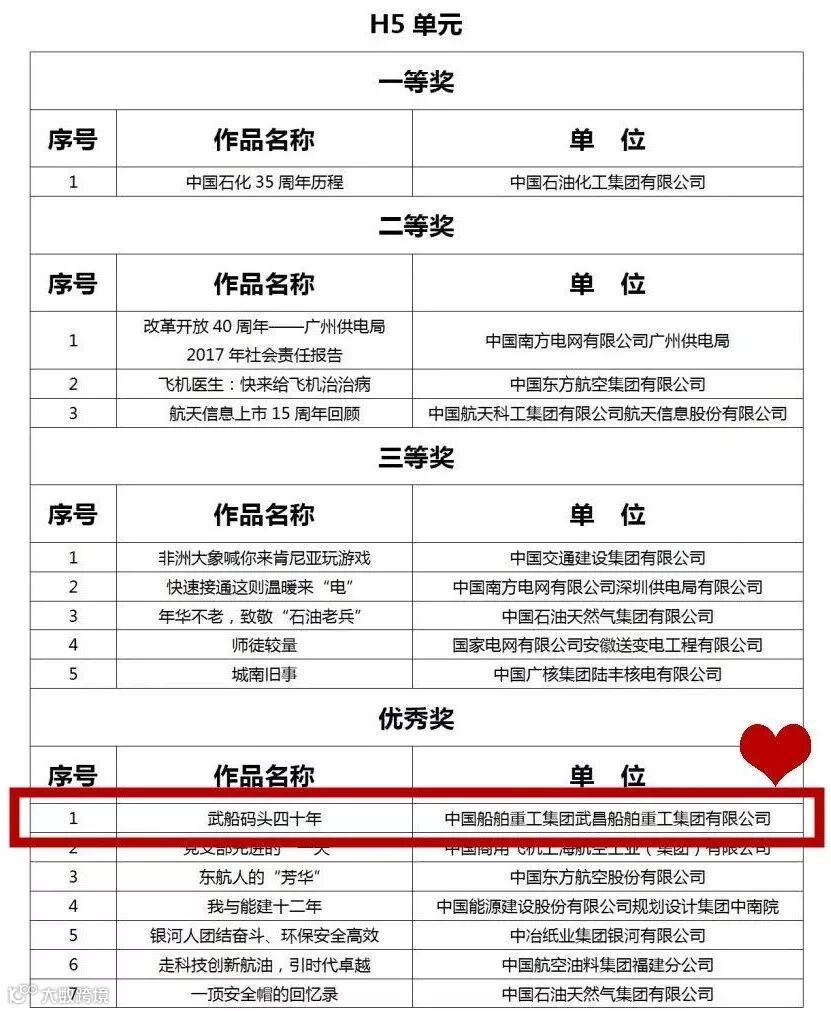 经过三轮评审,我们的作品获得了H5单元优秀奖,榜上有名,不仅是对武船集团改革发展取得的成绩与做出的贡献的肯定,也算是对小编们工作的认可与鼓励,小编们都很激动,觉得这个新年礼物还是蛮酷的!给武船点赞!给小编们自己也点个大大的赞!