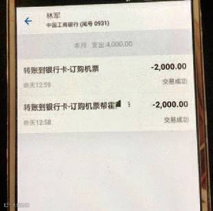受害者給「林軍」帳戶轉錢紀錄。