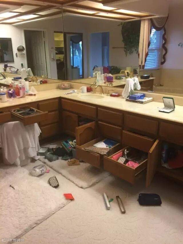 家住当地Maple Hills的梁先生和太太Serena上周末出门访客,“我们大概是傍晚七点出门,次日凌晨四点回家”,Serena表示,回家就发现情况不对,后院连接游戏室的玻璃门半开着。进到房子,果然惊见屋内两层楼好几个房间都已被翻箱倒柜,一片狼藉,手提包内钱包已无踪影,楼上主卧室的所有珠宝现金洗劫一空,书房内平常需要两、三个大汉才扛得动的保险整个不知去向,只留下空空的墙角,“全部损失粗算不会少于2万块”。