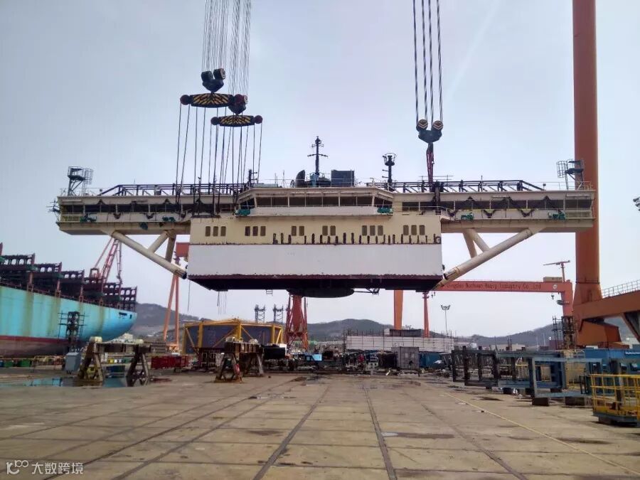 在“马士基E”系列船舶的新加直径6.2米,重约25吨的超大型导流罩工程的施工中,该新加导流罩位于船艉曲率变化最大的位置,在船宽方向和高度方向上与船体中心线成10°横向夹角;安装时,新导流罩在纵、横方向上存在双向角度,它的安装精度和质量直接影响着船舶的性能,也给现场施工带来了严峻的考验。以往的方法操作步骤非常繁琐,为提高该导流罩的安装精度和施工效率,船体车间组织专人经过仔细研究该导流罩的设计图纸后,对现有施工工艺进行了改进、创新,研制出了“立体定位”的施工方法并在现场进行实施。该轮进坞后他们利用船壳喷砂作业间隙,仅用3小时就完成了该导流罩安装所需的船体中心线、艉轴中心线等安装定位线的现场测量和堪划工作。在该导流罩吊装时,他们又对其吊点的布置进行了改进,将左舷原船吊点位置按照导流罩上已有的吊耳为中心,在船壳处向艏、艉各一个肋位布置两个吊点;在右舷设置一个吊点,先进行左舷导流罩的定位安装,再以左舷导流罩为基准将右舷导流罩进行拉靠,从而简便快捷的完成了导流罩的安装施工。由于采用了合理的定位方法和施工方案,仅用3天时间就完成了新加导流罩的装配定位,整个施工项目只用6天时间全部完成。据该轮服务工程师介绍相同的施工项目我厂的施工周期比其他船厂节约了近一半的时间,这在北海修船史上算是一个奇迹,施工质量也得到了船东的高度评价。