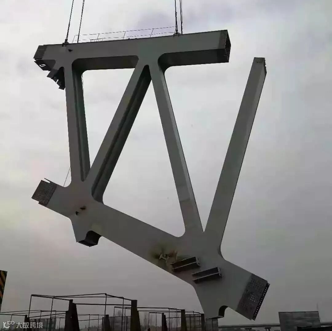 苏岭山大桥拱肋分段单件重量最大近150吨,最高约20米,宽16米,构件体积大,数量达58件,且均为异型钢构件,重心不均,拱肋在翻身过程操作困难极易发生安全质量事故。而常规采用大型浮吊船或用两台大型龙门吊抬吊翻身的方法,也因受沿途桥位高度限制不能抵达工地使用。