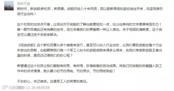 在各位亲们的期待与关注下,《视说武船》栏目横空出世,并于11月23日(上周五)正式与大家见面。为了保证该栏目形式上更新颖,技术上更成熟,内容上更贴近大家的需求,小编们特在上期节目中公开征集各方意见,并收获了很多宝贵、有益的建议。下面,小编要选取最优质的留言进行奖励,因为实在都太多太好了,木有办法,有深度选择恐惧症的小编将获奖名额由5名升级到8名,想想都为大家高兴呢!