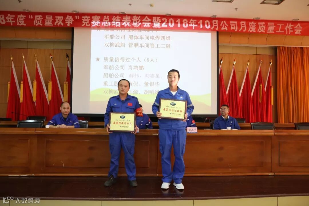 10月30日,武船集团2018年度“质量双争”竞赛表彰大会在综合大楼学术报告厅隆重举行。会议由武船集团副总经理姚胜华主持,党委副书记、工会主席杨少稀宣读了表彰决定。
