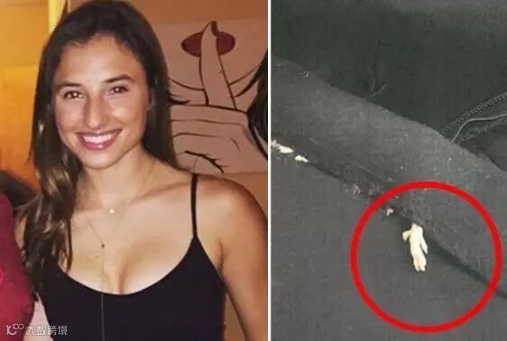她震惊地从椅子上跳起来,跑去脱掉裙子,赫然发现裙摆的缝合处有一只大约二英寸半长的死老鼠在里面。