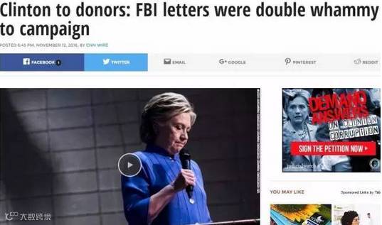 昨天希拉里讲述了自己的败选原因,她说,“这次选举为什么不成功有很多原因。……但我们的分析认为(FBI)局长科米(James B.] Comey)致函国会无端引起质疑,遏制了我们的势头。”