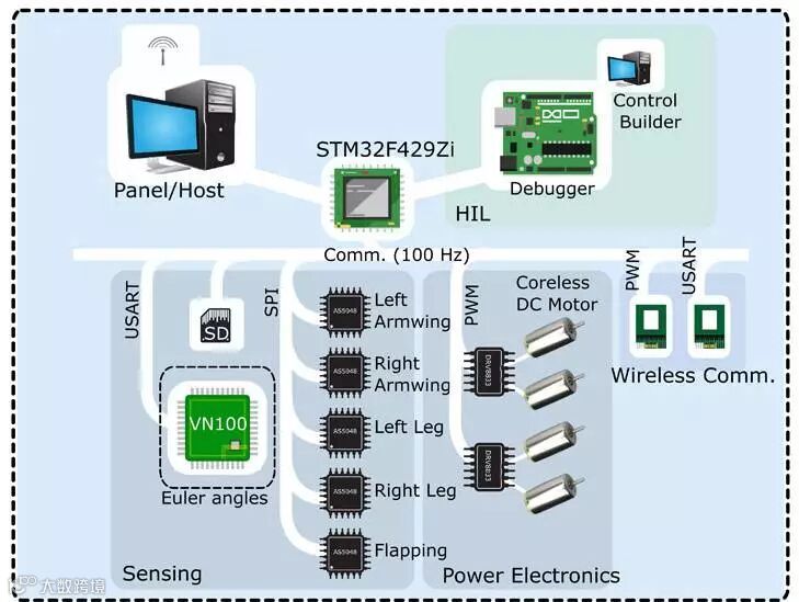 图2. 蝙蝠机器人(B2)的电子部件/©Ramezani等人