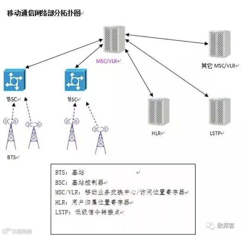 移动通信网络部分拓扑图如下所示: