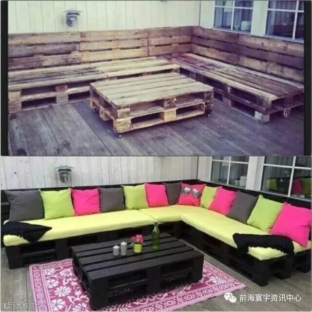 如果你的预算有限,宜家有一些很好的户外家具,只需要组装,或者把你的手放在一些免费或便宜的木托盘上,然后把它们变成功能性的眼睛糖果。作为一个点睛之笔,通过添加一些漂亮的垫子的颜色流行保持夏季活着。
