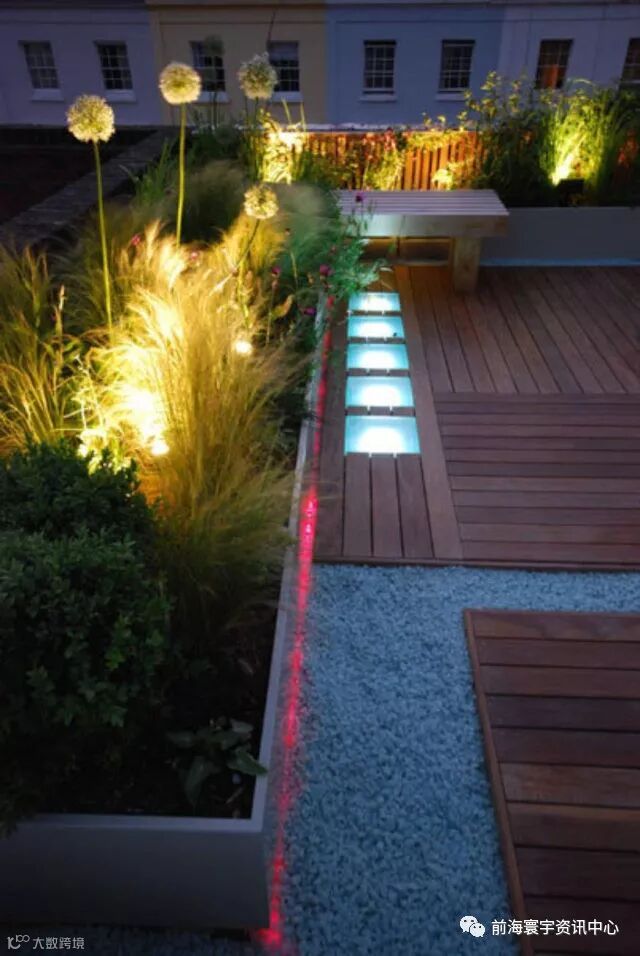 良好的照明是创造大气空间的关键。用LED甲板灯创造视觉兴趣,并投入几个灯笼增加气氛。
