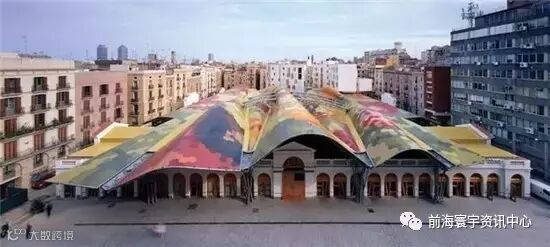 建于十九世纪的圣卡特纳市场(Santa Caterina Market),是巴塞罗那第一座有屋顶的菜市场。因时代变迁,地区环境质量逐年恶化,街道狭窄、拥挤,缺少开放空间和服务设施,该市场早已不符现代生活使用。新的圣卡特纳市场耗时七年才完工,是由由西班牙著名夫妻档建筑师Enric Miralles(米拉莱斯)及Benedetta Tagliabue(EMBT)设计的。