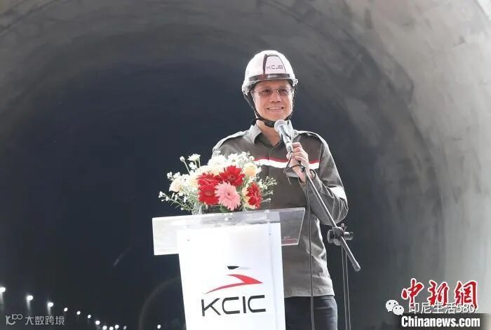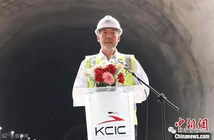 中印尼高铁合资公司(KCIC)董事长詹德拉、监事会主席撒哈拉,雅万高铁承包商联合体指挥长肖颂新,中国中铁印尼雅万高铁项目部总经理张伟,印尼公共工程部官员等出席当天在5号隧道施工现场举行的贯通仪式。