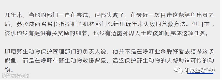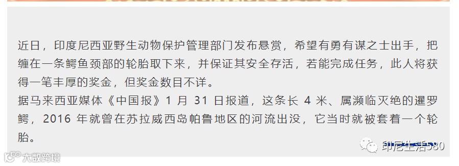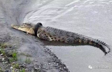 印尼鳄鱼颈部被轮胎套住,呼吸困难