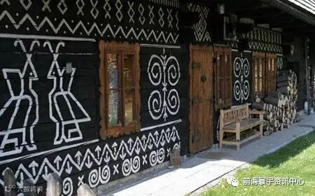 这些让小村闻名的木屋,样子典雅、古朴,极为可爱。几乎每幢木屋的外墙上都画着精巧的图案。这些手绘装饰在奇奇马尼木屋外的白色图案,仿佛图腾一般,有着200多年的历史。当时,不知因何缘由,村民们开始使用诸如抽象几何图案、动物、箭头、苜蓿、十字、心形等造型装饰木屋的外墙。