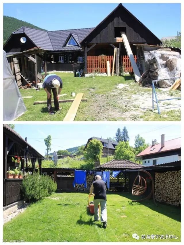 蓝天下,黑底线描的木屋聚簇在小村教堂的周围,公鸡和狗儿们在花园里围着老人们转悠,村子里仍旧保持着农耕方式的生活习俗……一切都仿佛停止在过去的某一刻。
