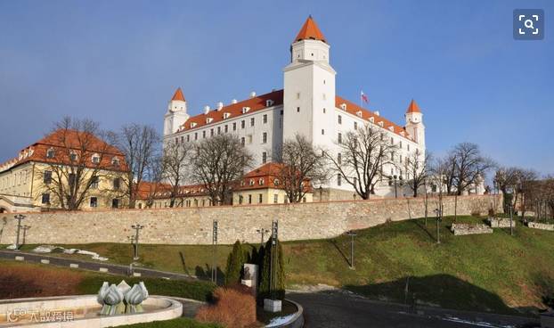 布拉迪斯拉发城堡是斯洛伐克首都布拉迪斯拉法市最显著的建筑物之一,位于多瑙河岸边一处85米高的高地上。城堡形如一张倒置的八仙桌,远远望去,城堡四角高耸的塔楼犹如桌子的四条腿,别具一格。