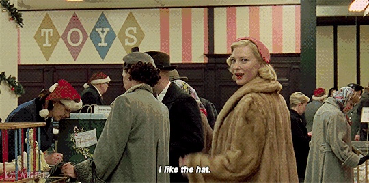 影片以圣诞开场,特芮丝的圣诞围巾,卡罗尔的红色外套,到深冬的街道,蒙着雾气的玻璃,和卡罗尔的神秘优雅温柔霸道,冬夜反复观看再合适不过。