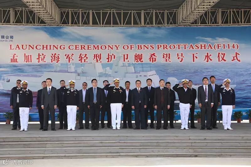 2018年4月8日,武船集团为孟加拉海军建造的轻型护卫舰“希望号”在武船双柳基地顺利下水。孟加拉监造组组长沙比尔准将、武船集团副总经理姚胜华参加下水仪式。