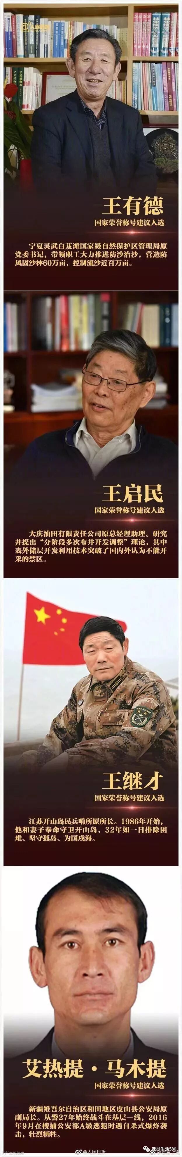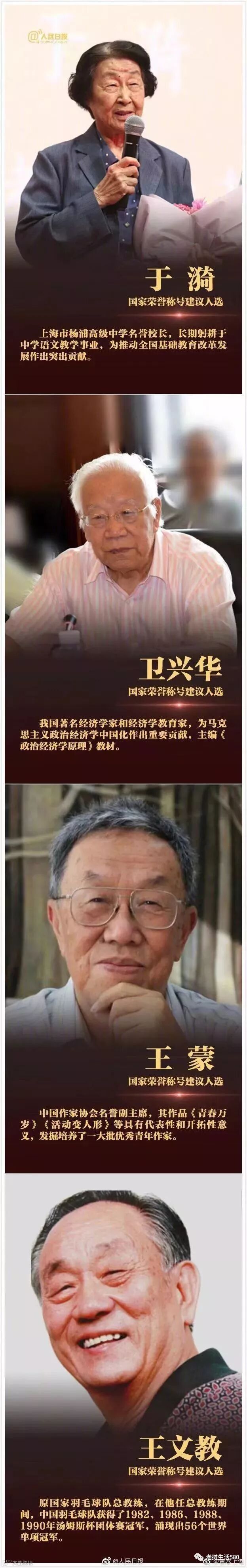 国家荣誉称号建议人选都有谁?(按姓氏笔划排序)