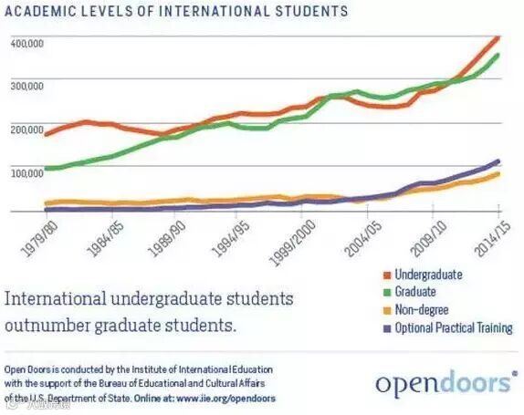 美国发布的《2015门户开放报告》中提到,在美国际留学生总数在2014/15年度人数突破30万大关,增长率高达10%。其中,初高中留学人数均出现大幅度增长,全球在美低龄留学生高达14万余人,根据中国学生所占比值进行粗略估算,仅最近一年时间就有4万余名中国学生在美学习中学课程,比去年增长了近5000人。