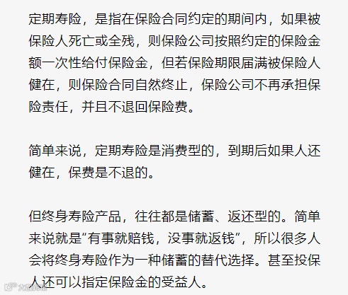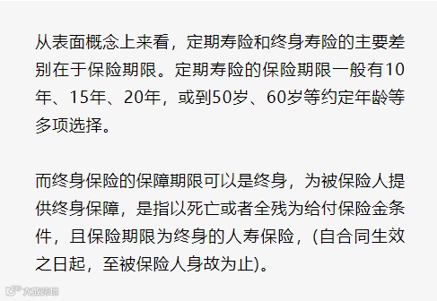 那么定期寿险和终身寿险有什么区别?