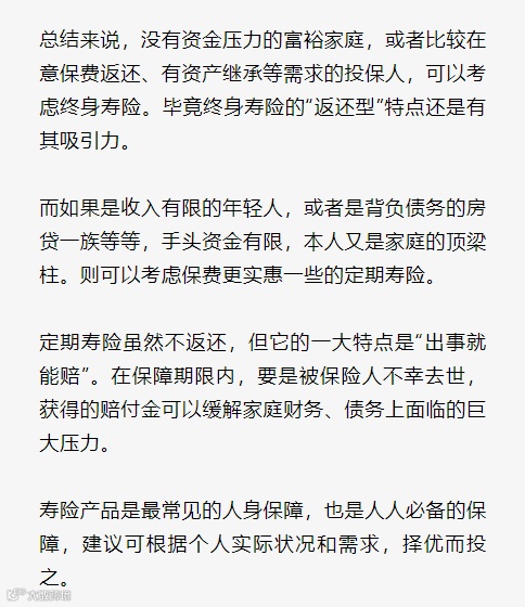 终身寿险和定期寿险,到底要如何选?