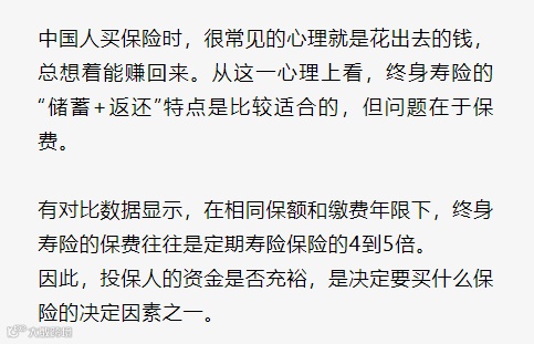 保费差异:终身寿险的保费往往数倍于定期寿险