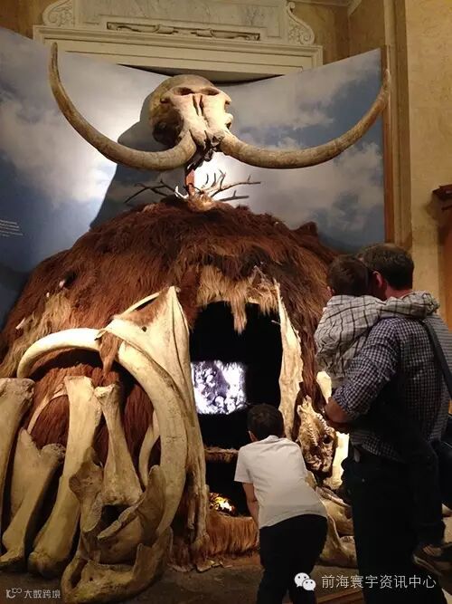 这是奥地利自然史博物馆,讲原始人利用猛犸的骨头和毛皮来搭房子。