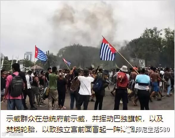 據悉,巴布亚民众上週前往国家宫示威表态时,也一度高举成为巴独组织标志的晨星旗。