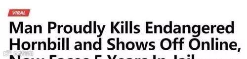 6月22日,印度尼西亚一名男子进入森林杀死濒危犀鸟,在网上晒图走红,但被警方发现。目前该男子已被捕,或面临五年监禁。